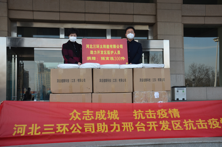 眾志成城,抗擊疫情--河北三環在行動!河北三環太陽能公司助力邢臺經濟開發區抗擊疫情,捐贈隔離服300件。